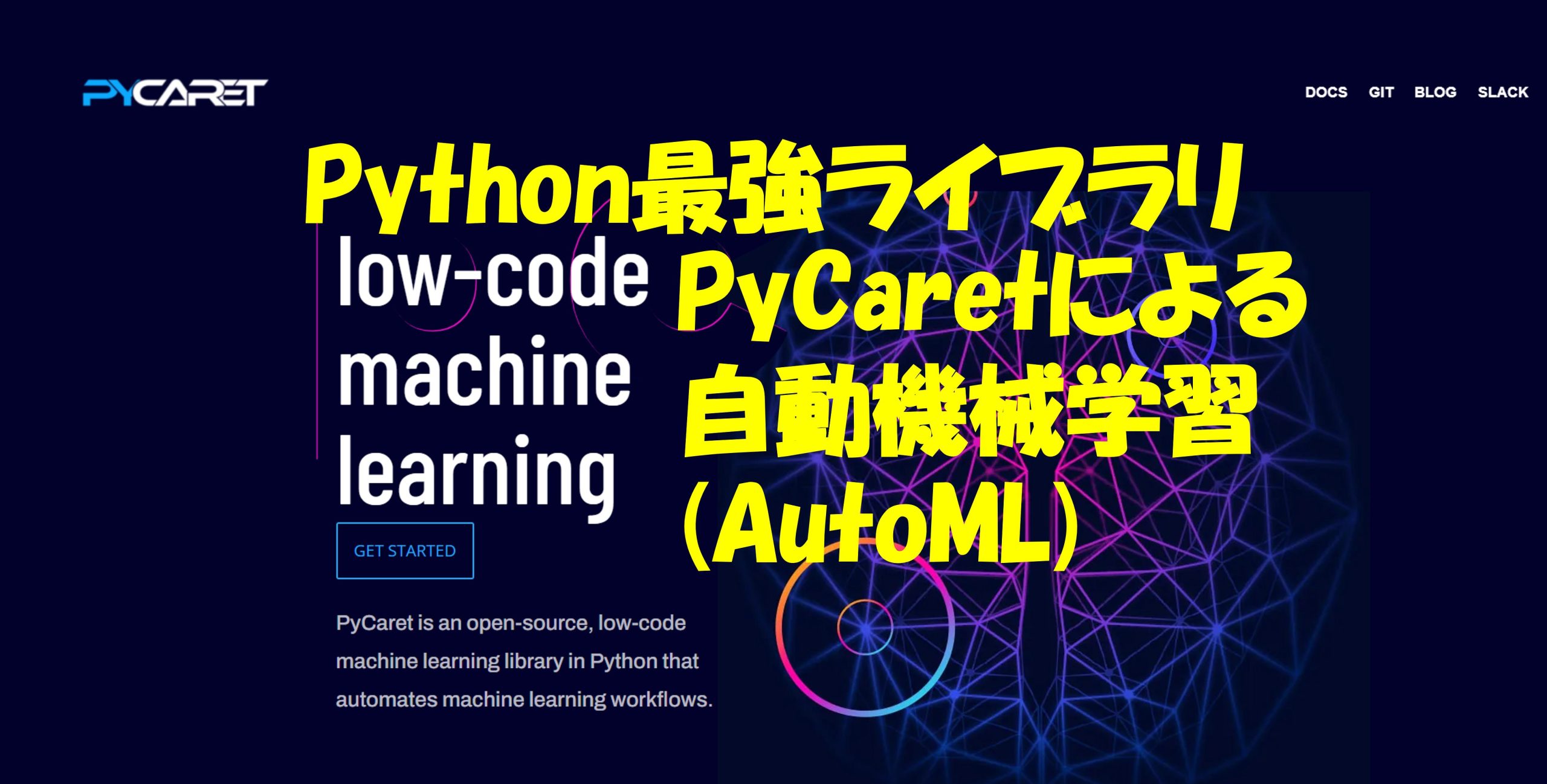 PyCaretとは、データの前処理自動化、モデルの比較自動化、チューニングの自動化などを行ってくれる、とても便利なライブラリです。