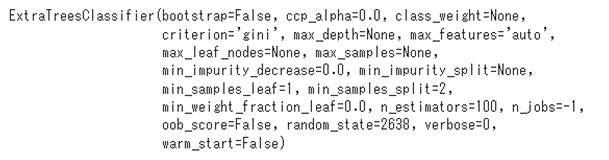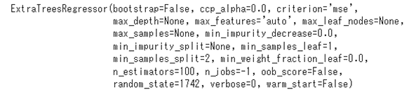 一番下段に、Extra Trees Regressorの設定されているパラメータが載っています。