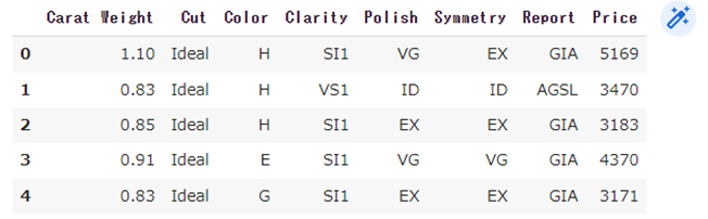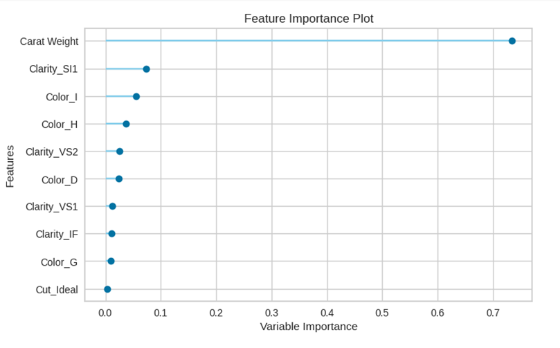 今回はPyCaretで用意されているデータの’diamond’を使います。ダイアモンドの価格を予想します。