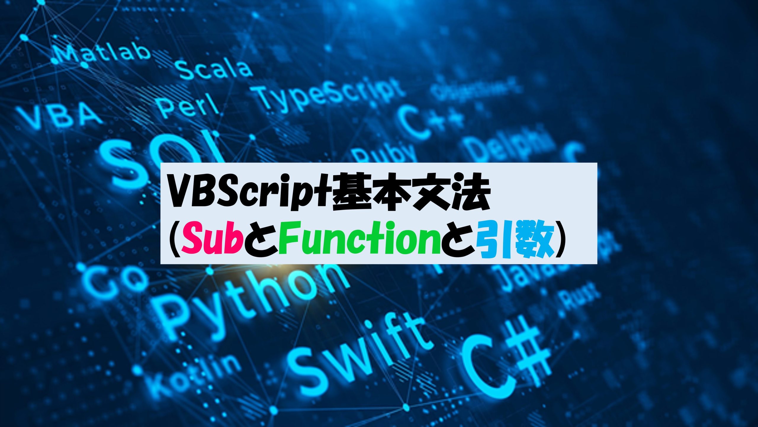 今回はVBScriptの基本文法であるSub、Function、引数の使い方をご紹介します。